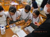 学習の総仕上げとして、灘の華本舗の職人 あさ井さんをお招きし、おいしいお菓子を作るための苦労や工夫などについて、教えて頂きました。