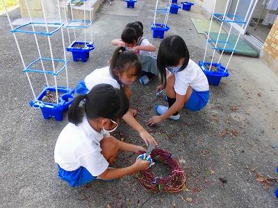 今日は、あさがおのつるを使ったリース作りを行いました。