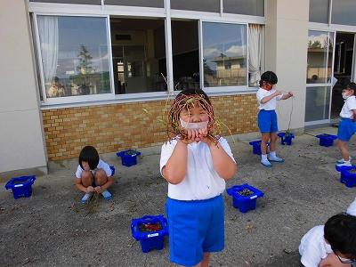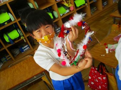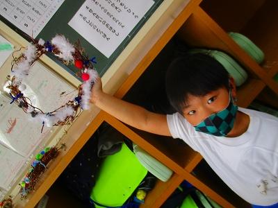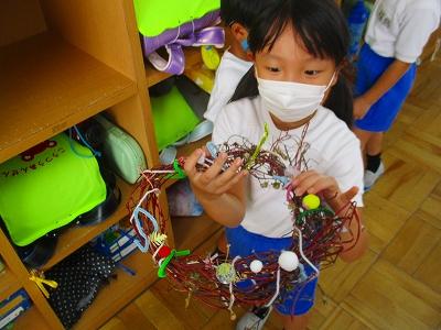大切に育てたあさがおが素敵なリースになり、子どもたちはにっこり笑顔でした。