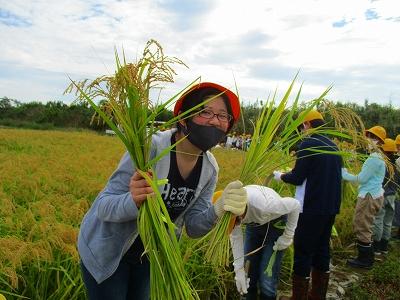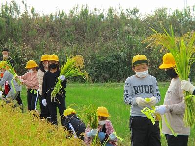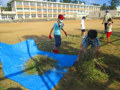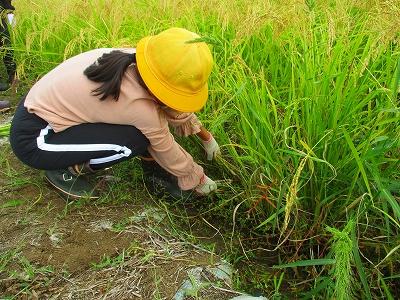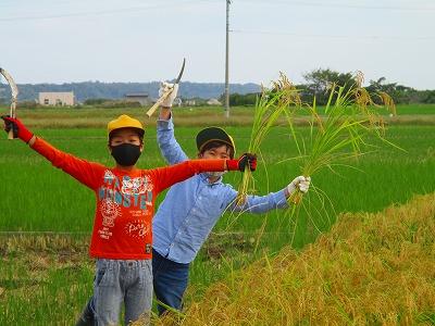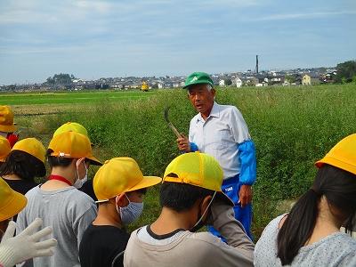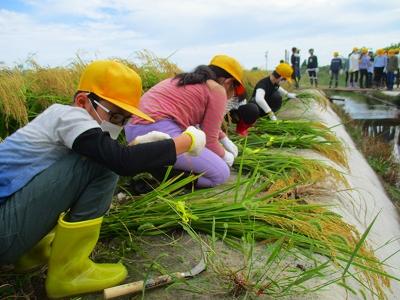 鎌を持つのも初めてという子もいましたが、次第に慣れ、どんどん前へ刈り進んでいきました。