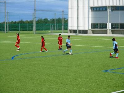 当日は、快晴の中、いつも練習していた運動場とは違う大きなサッカー競技場でチームの仲間とともに笑顔で、精いっぱいボールを追いかける姿が見られました。