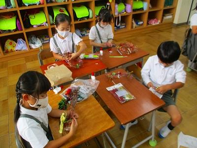 一人ひとり、世界に一つだけのすてきなリースを完成させることができました。お家で飾るのを楽しみにしていました。