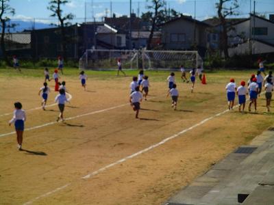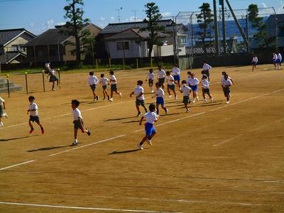 今日からかけ足運動がスタートしました。一定のペースで走れるように練習している様子が見られました。