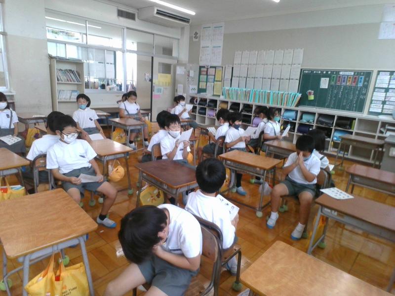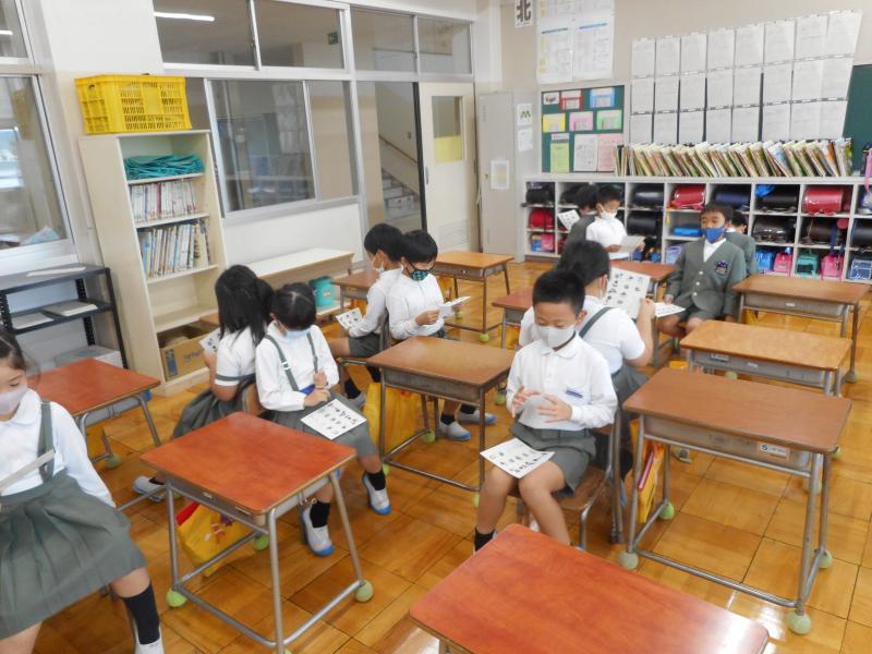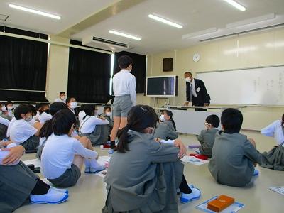 10月15日(金)NPO法人『未来創造うちなだ』の代表 森さん、小泉さんをお招きして「うち・まち」(内灘町の未来を明るく創造しようという奉仕の取り組み)についてお話を伺いました。5年生は、「うちなだ」に対する思いを高め、自分たちにもできることはないかと思いを馳せていました。