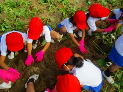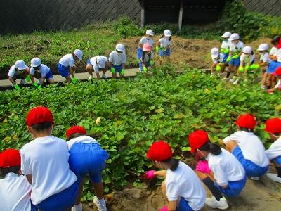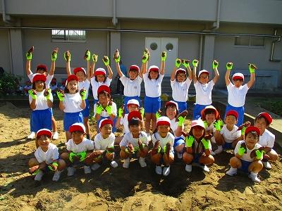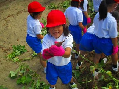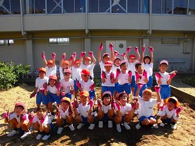 さつまいもを持ってみんなで記念撮影!笑顔いっぱいでした!
