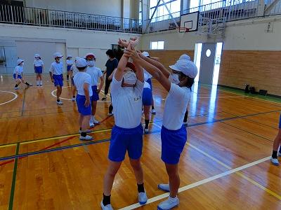 初めはどのように3年生に伝えればよいか、戸惑う場面も見られましたが、回を重ねるごとに、一緒に動きをやってみるなどしながら、うまくアドバイスができるようになっていきました。