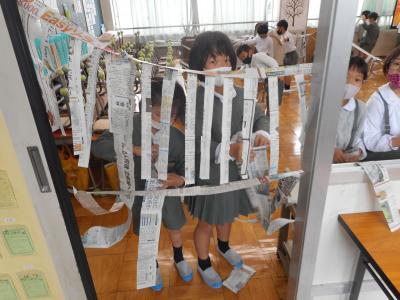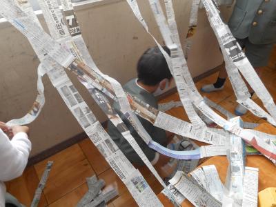 2021年10月25日 15時58分10月21日に図工の「つないでつるして」をしました。2年生の教室と廊下を使い、思い思いに新聞紙をつないだり、つるしたりしていました。いつもと雰囲気の違う教室や廊下を見て、大興奮でした。友だちと協力する姿がたくさんみられました。