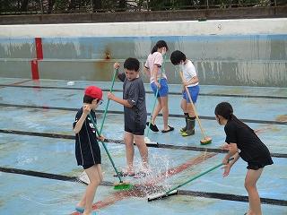 今日の5・6限に6年生がプールを掃除してくれました。プールの中、プールサイドともに水をまきながらゴシゴシゴシ、必死で磨いてくれました。とてもきれいになりました。6月9日のプール開きが楽しみですね。