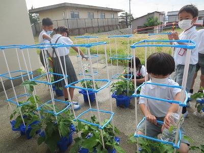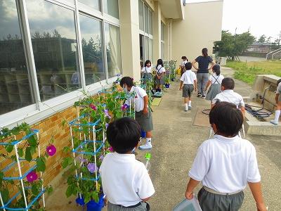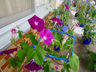 つるも伸び始め、どの子のあさがおも元気に育っています。