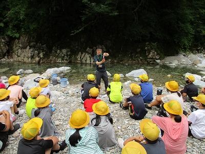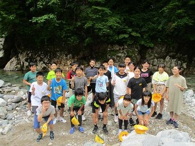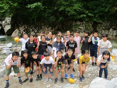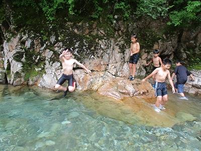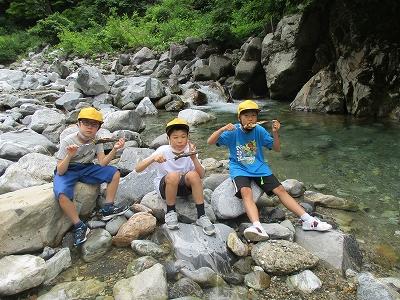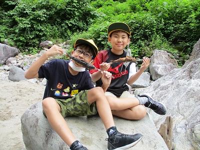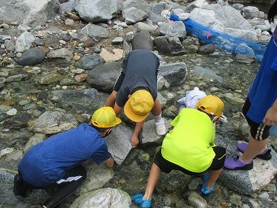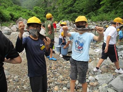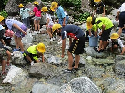 目附谷川の清流はとても澄んでいました。とても冷たかったのですが、子どもたちは岩の下に手を伸ばし、手の感触で岩魚を探しました。恐る恐るつかもうとしても、すぐに手の中から逃げていきます。勇気を振り絞り両手でつかむと、ぶるぶると命の感触が手に伝わってきました。