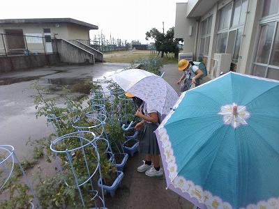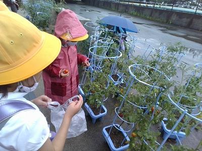 雨の続く中ではありますが、子どもたちは赤くなったトマトを見ると「もうとっていい?」と待ちきれない様子で収穫しています。