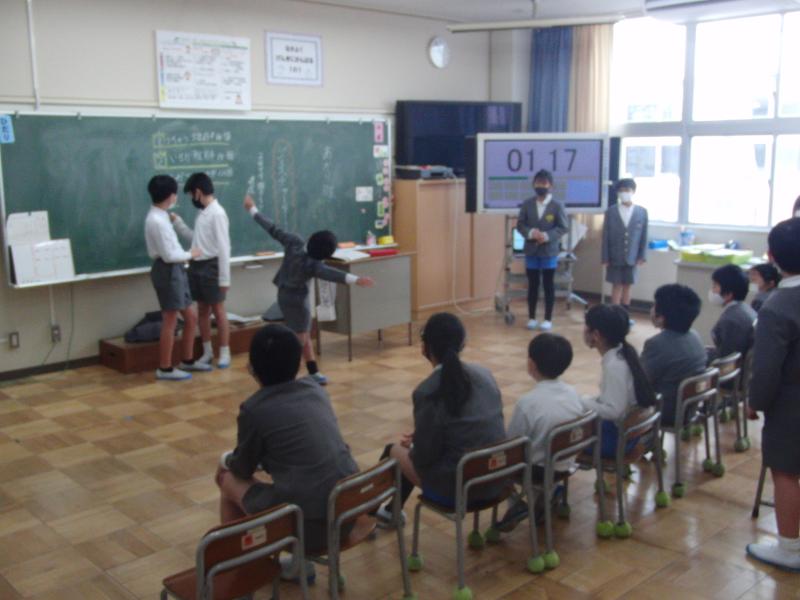 次にロールプレイを行い、さわやかさんの伝え方を練習しました。やってみた後は「気持ちがすっきりした。」「自分も相手もいい気持ちになる。」と子どもたちは話し、さわやかさんの伝え方のよさを実感していました。