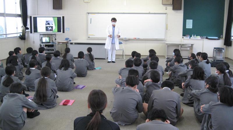 6年生の総合的な学習では「職業人に学ぶ」という学習を行っています。今回は、たむら動物病院院長、田村兼人先生のお話を聞きました。