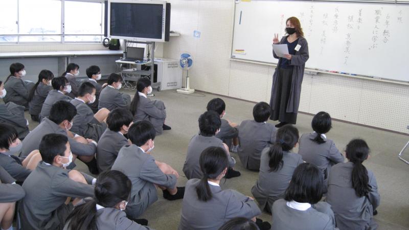 美容師の植松さんと医療事務をされていた植松さん、エステティシャンの早川さんをお招きして今年度最後のゲストティーチャーのお話を聞きました。