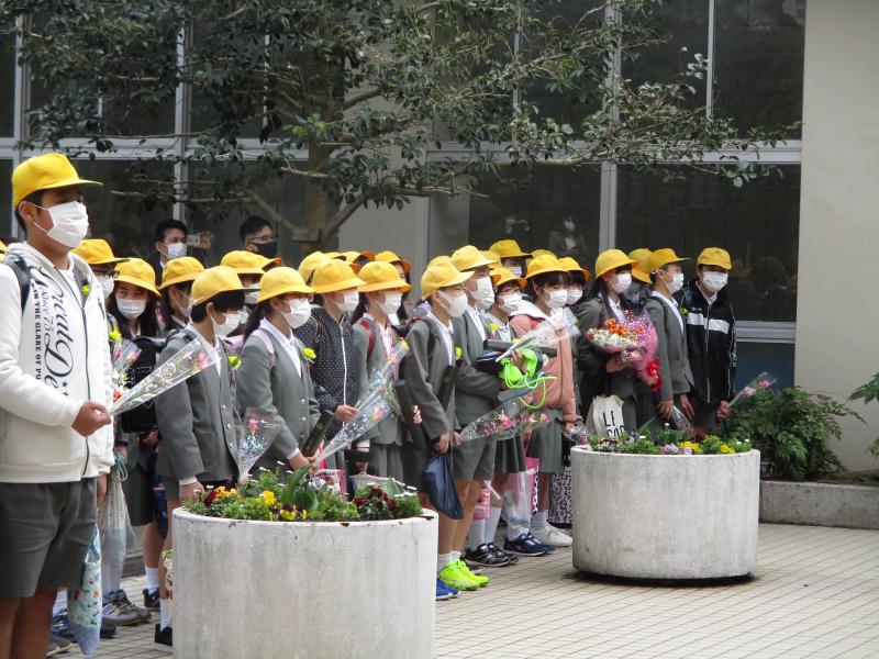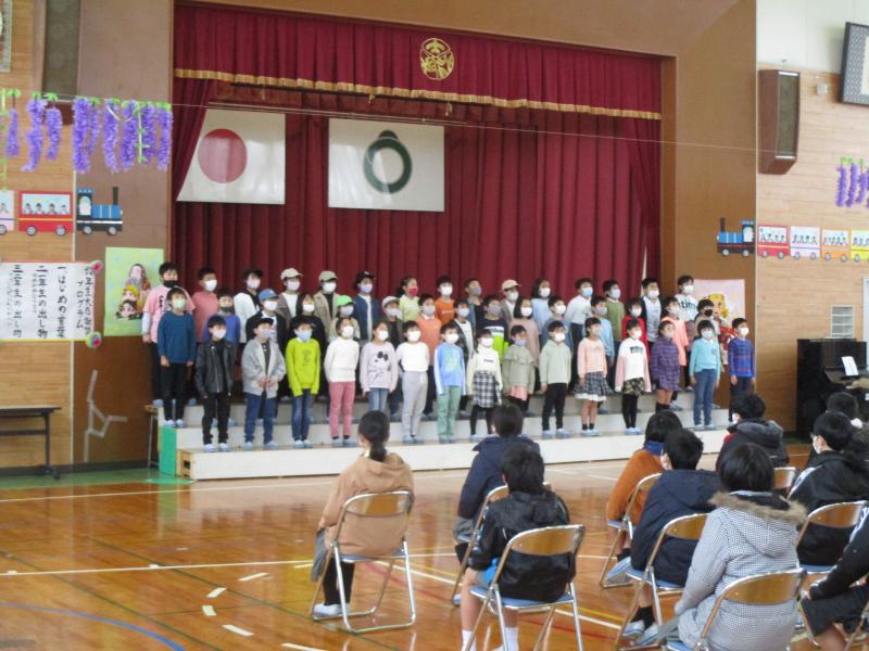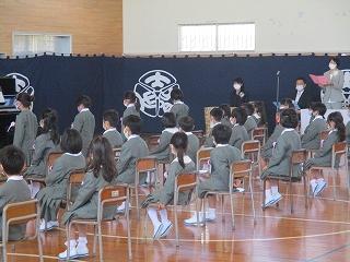 最後はたくさんの思い出がつまった児童玄関で先生方や5年生とお別れ式をしました。歌や群読で自分たちのこれからの想いを伝えることができていました。