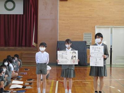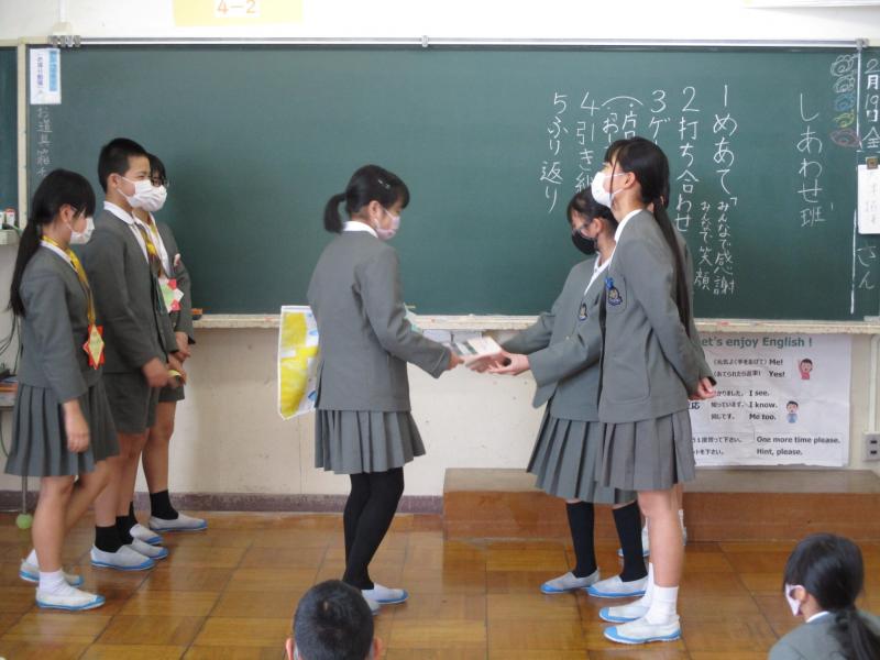 いつもは6年生が司会や遊びを考えていましたが、今回は司会を5年生が行い、遊びを4年生が考えました。最後に6年生に下級生から手紙のプレゼントを渡しました。6年生はとても嬉しそうにプレゼントをもらっていました。どの学年にとっても充実感があり、思い出に残る1日になったようです。