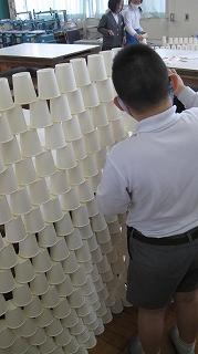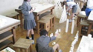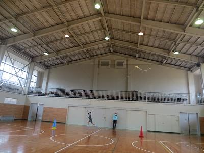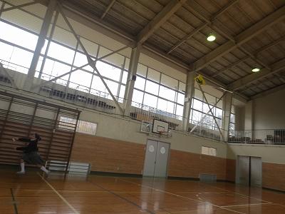 そして凧が完成!試しに体育館で飛ばしてみました。