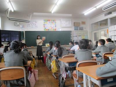 今年も、内灘町英語指導員の荒木先生が、朝学習の時間に各クラスで英語の読み聞かせをしてくださいました。