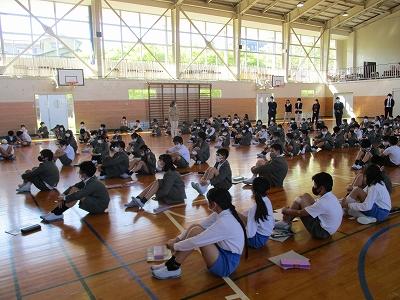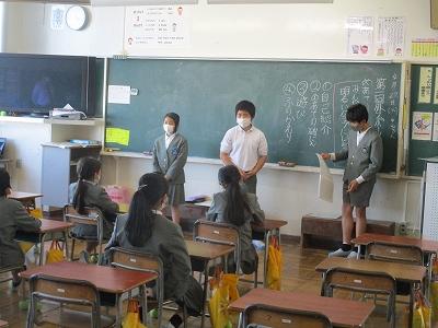 また、5年生が主体となってふれあいタイムも行いました。ふれあいタイムでは6年生の発表をビデオで鑑賞し、ふれあい遊びを行い、6年生から5年生へ引き継ぎ式を行いました。