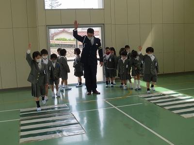 横断歩道の渡り方も教えていただきました。左右の安全を確認しながら、手を挙げて渡ることを学びました。