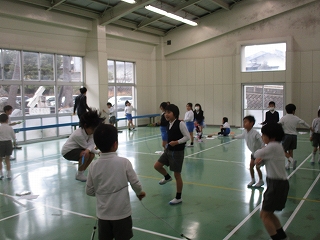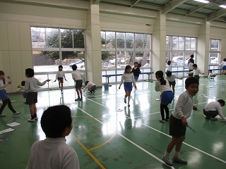 今年から発足の「なわとびクラブ」。みんなでなわとび技術を高めています。