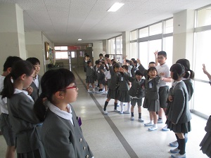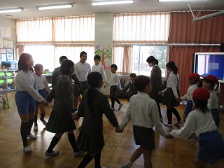 そして各クラスに分かれて、ゲームをし、一緒に給食を食べました。