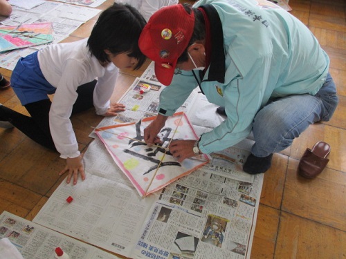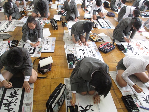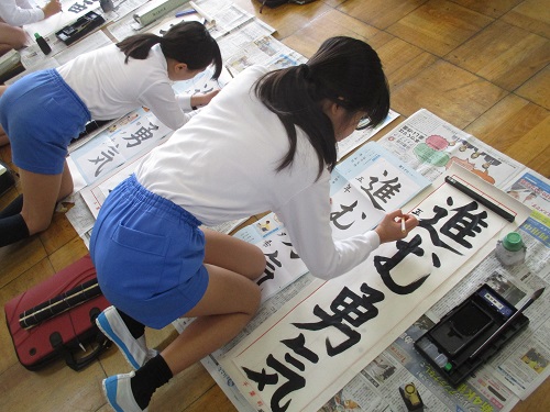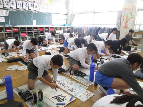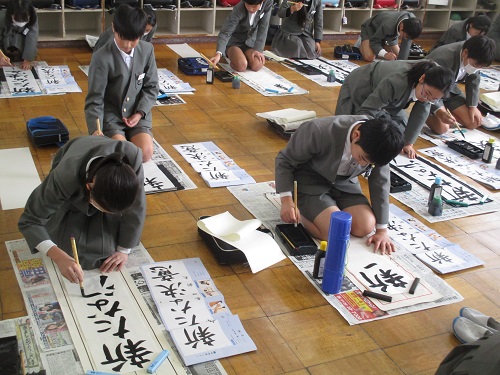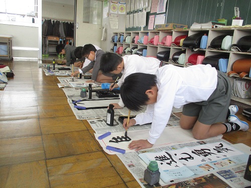 今日は書初め大会が行われました。一人一人が集中して取り組み、すばらしい作品にすることができました。
