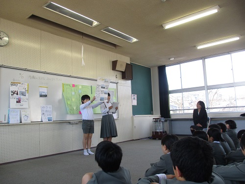 発表に向けて、冬休みから練習を重ねてきました。本番では、学校生活について堂々とスピーチすることができました。
