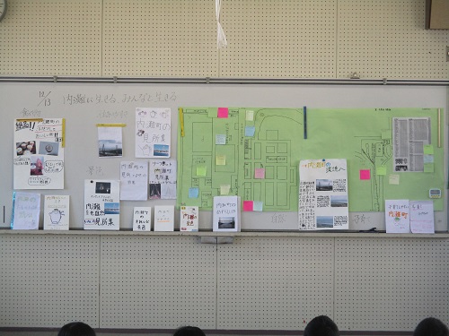 子どもたちはインタビュー活動や実地調査を通して、たくさんの「内灘町のよさ」を発見してきました。そして、それらのよさをより多くの人に知ってもらうにはどうすればよいかを考え、リーフレットやパンフレット、ポスター、地図を作成しました。