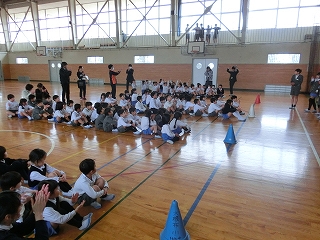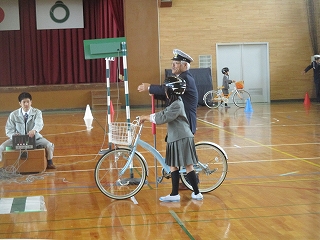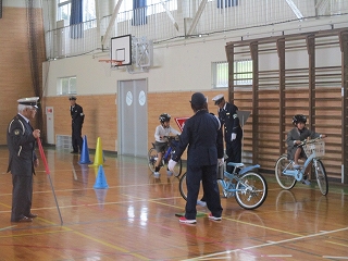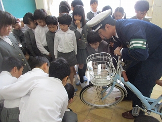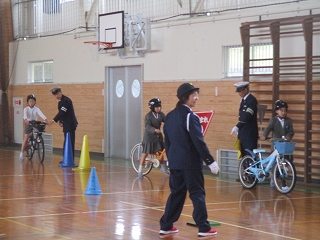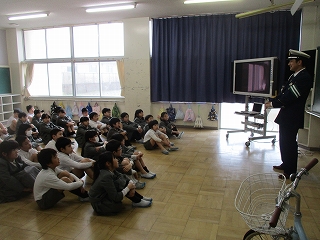 4年生は自転車を安全に乗るためにどうすればいいかを津幡警察署の方から教えてもらいました。