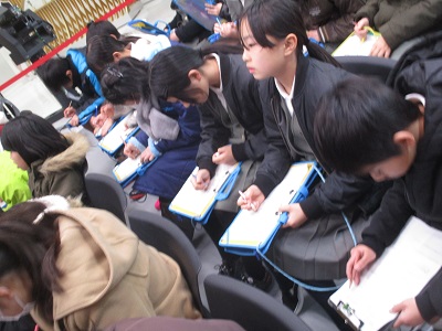 テレビ局ならではの設備(写真で分かるように大きな扉に高い脚立など・・・)に、驚きがいっぱいでした。子供たちにとっても貴重な経験になったと思います。NHK金沢放送局の皆様、本当にありがとうございました。