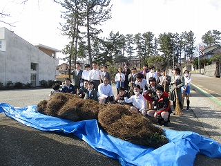 5、6年生の有志が20名以上集まり、昼休みの20分間で、こんなにたくさんの松葉を集められました。