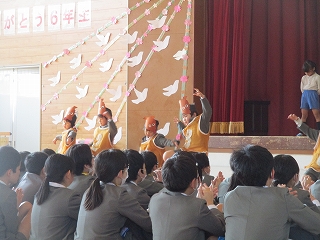 22日(金)に6年生大感謝祭がありました。6年生に今までの感謝の気持ちを伝えるために、各学年、劇や歌などの出し物を一生懸命練習してきました。本番は目の前に6年生がいるので、練習以上に感謝の思いを伝えることができました。