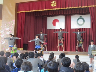 6年生は1~5年生に感謝の気持ちを込めて、ダンスと歌を披露しました。ゆずの「友」を歌い、6年生の絆が伝わるすてきな歌でした。