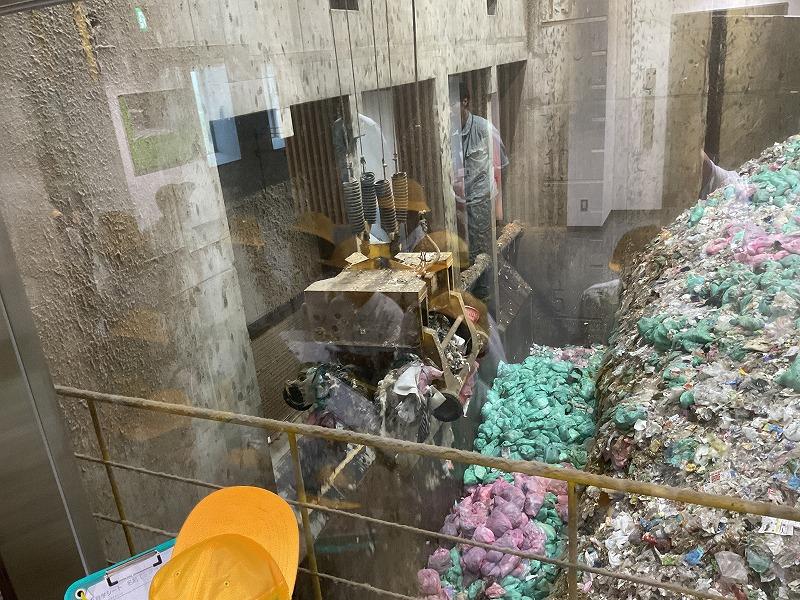 実際に収集車からピット内へごみが投入される様子やクレーンでごみを撹拌する様子を見ることができました。