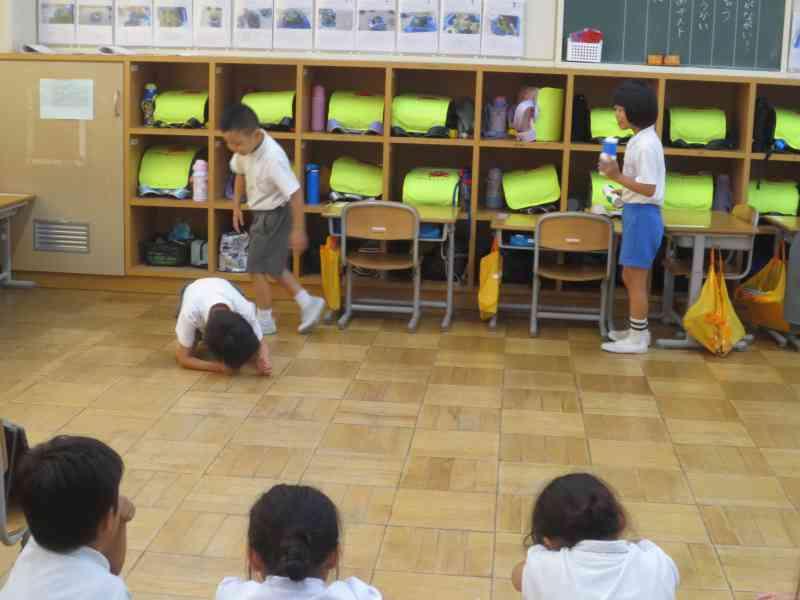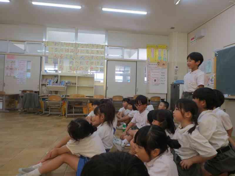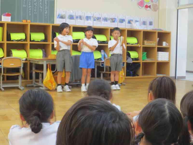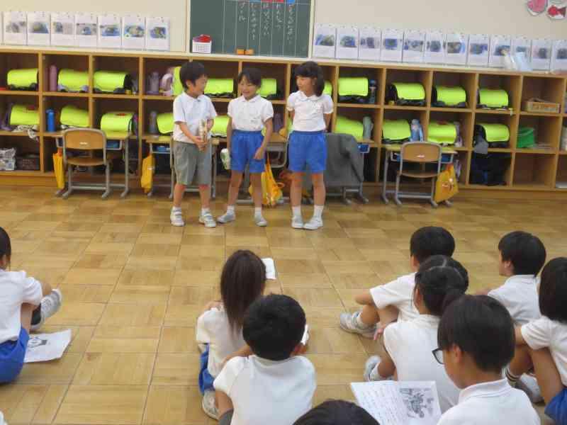 1年生は「おむすびころりん」の音読発表会を学年で行いました。