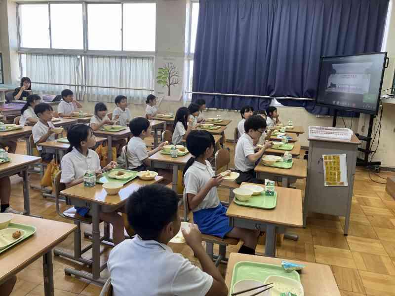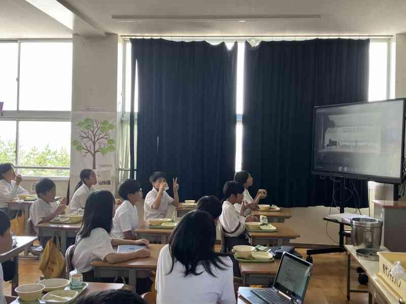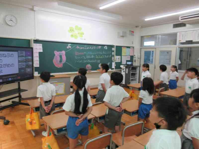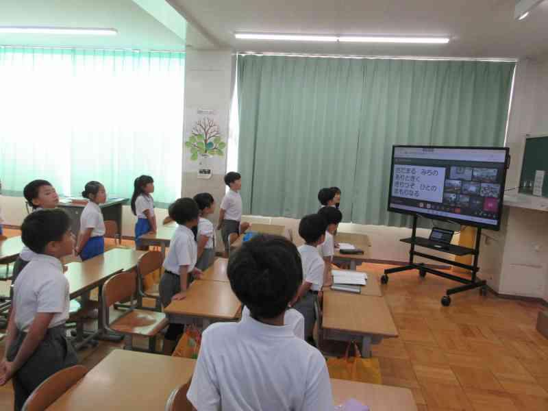 今回はまだ体育館が暑かったのでMeetで各クラスから参加しました。久しぶりの校歌でしたが、元気のよい声が教室中に響いていました!