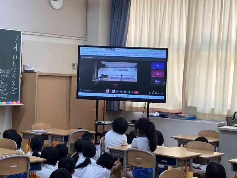 「音楽会本番に向けてたくさん応援してくれた感謝を全校に伝えたい!」と、子どもたちから声があがり、6月にあった音楽会の本番の様子をMeetで全校に披露しました。