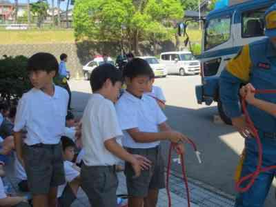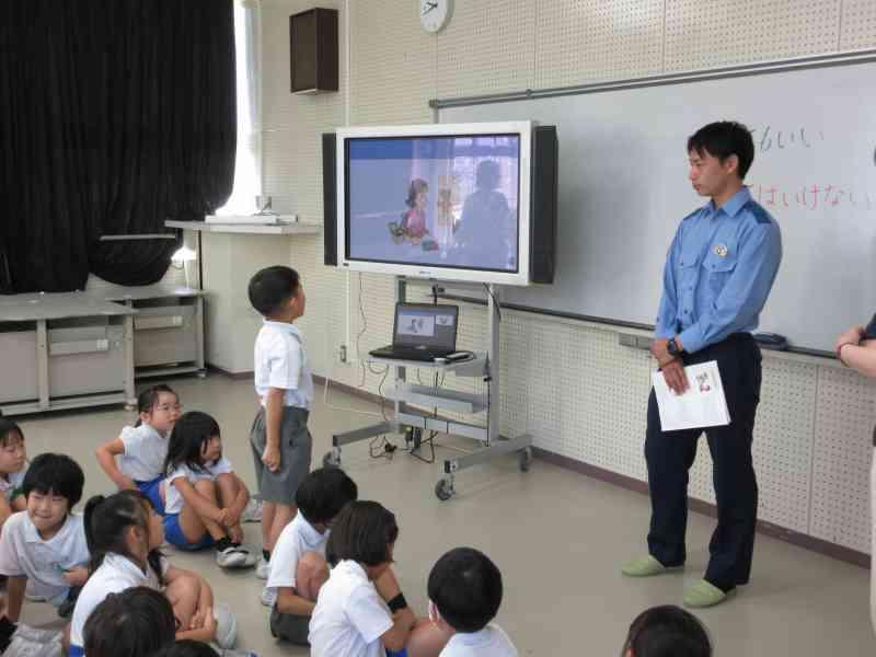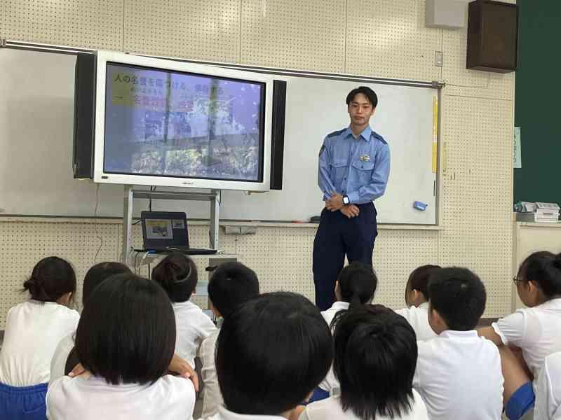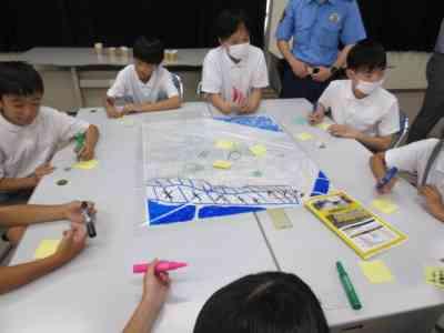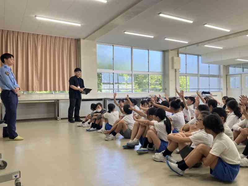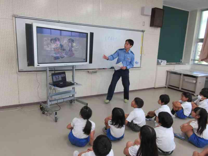 大根布小学校でも、本日、津幡警察署の方々にお越しいただき、6年生を対象に防災教室を実施しました。