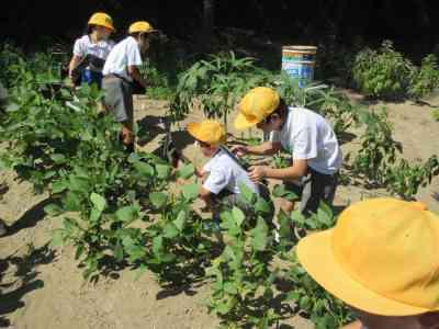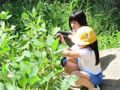 一粒の大豆から、たくさんの莢ができていることにびっくりしている児童もみられました。