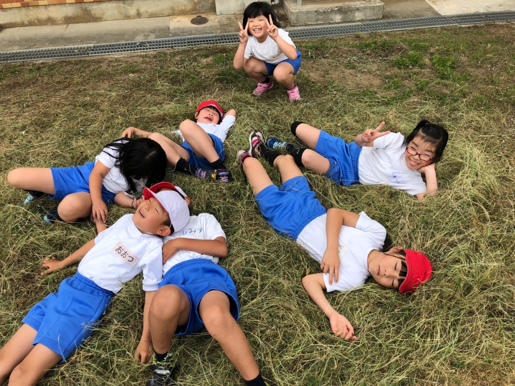 「ふかふかや。」「気持ちいい。」「先生、寝転がっていいですか。」「おもしろそう。わたしもねころがっていいですか。」・・・