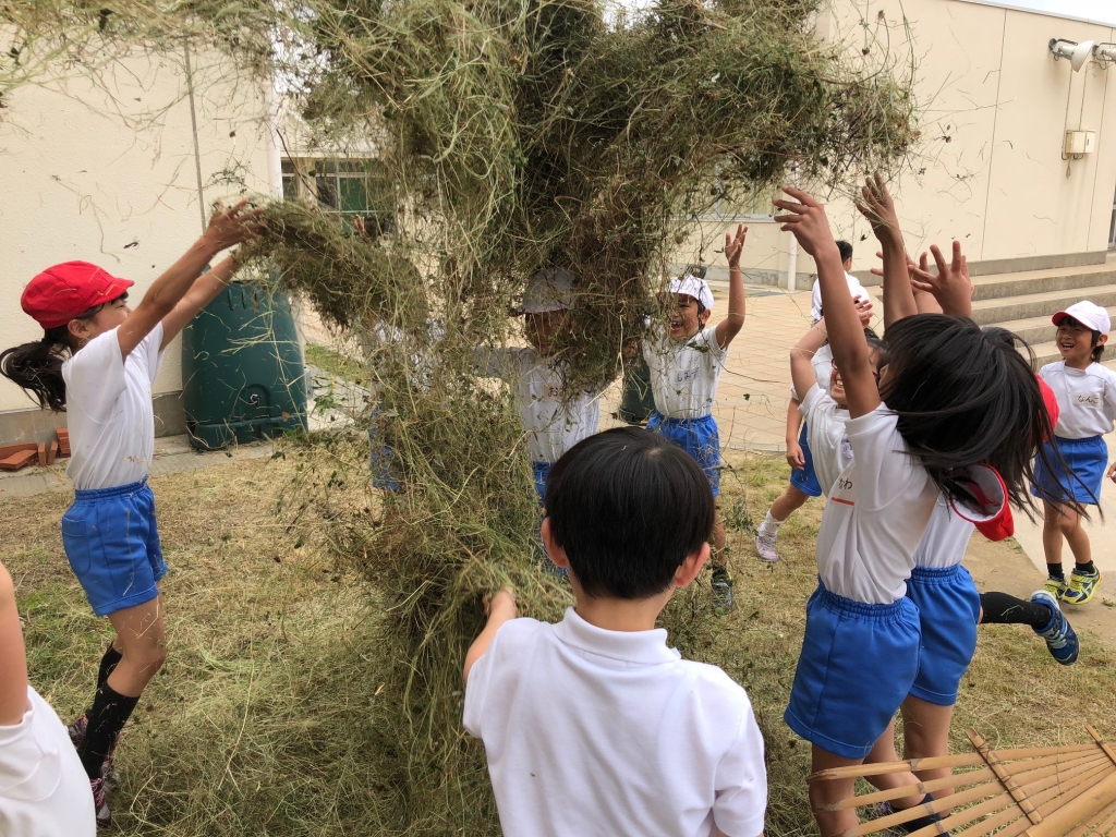 「教頭先生、その草をお山にしていいです。」と聞かれたので、OKと伝えると、、面白そうだと何人も集まってきました。
