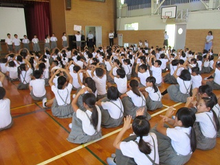 最後には全校で、6月の今月の歌だった「にじ」を歌いました。