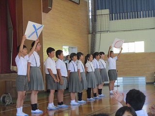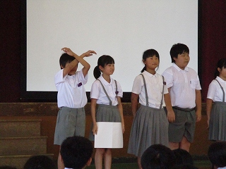 各委員会で練習をして、委員会の仕事を知ってもらおうと工夫した発表でした。