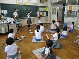 各学年1組のグループは、運動場や体育館での遊びをすることができ、ドッジボールや鬼ごっこなどを元気いっぱいに遊んでいました。各学年2組のグループは、教室で「新聞じゃんけん」「聖徳太子クイズ」などで盛り上がりました。