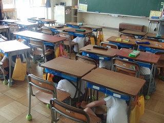 (地震発生時の安全行動) しゃがむ、かくれる、じっとする