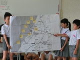 4年生は総合で「内灘町は高齢者にとって住みやすい町なのか」を大きな課題に設定し、「病院」「老人ホーム」「町の様子」「お店」「町のサービス」の5グループに分かれて調べました。