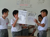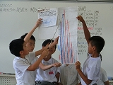 今日は5グループの発表会でした。それぞれのグループで調べたことをクイズや劇、ペープサートなどを使い、ほかのグループの子たちに発表していました。内灘町は高齢者が住みやすいようにいろいろな工夫やサービスをしていることがよくわかる発表会でした。
