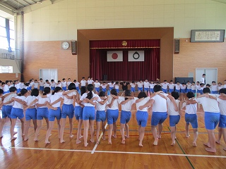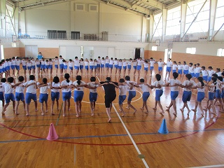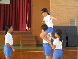 9月15日(土)に行われる大運動会に向けて、7月18日(水)、5、6年生は組体操の練習を開始しました。