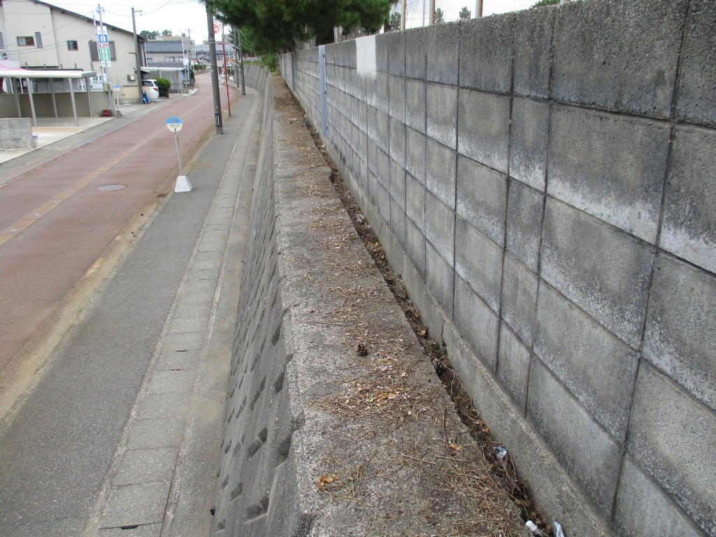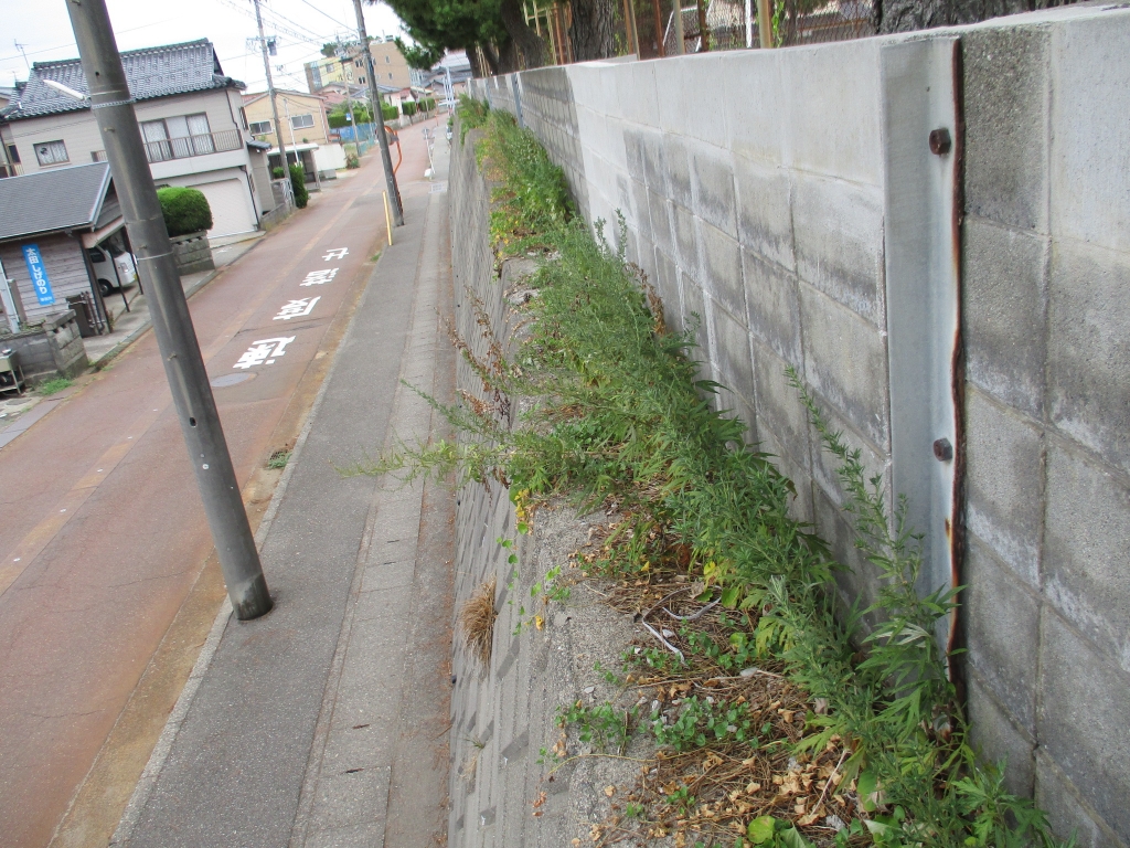 校舎ブロック塀脇の雑草を取り除く前と後の写真です!